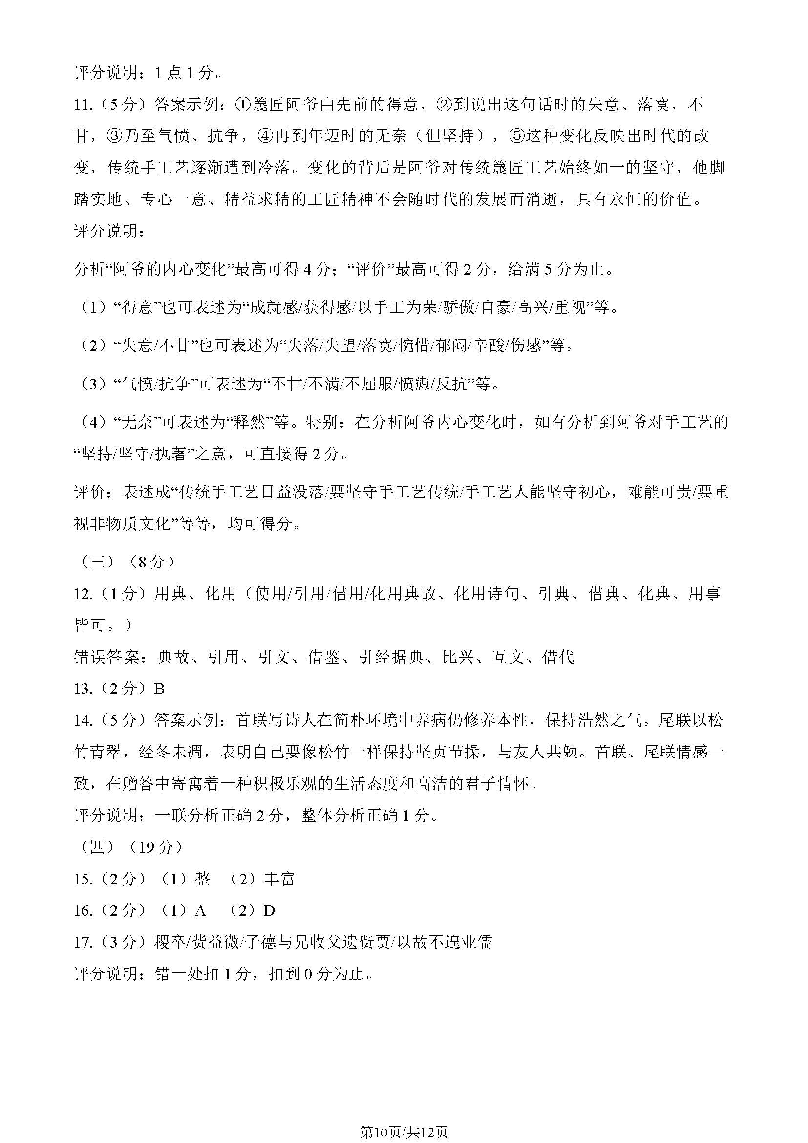高考语文试题答案2023上海高考