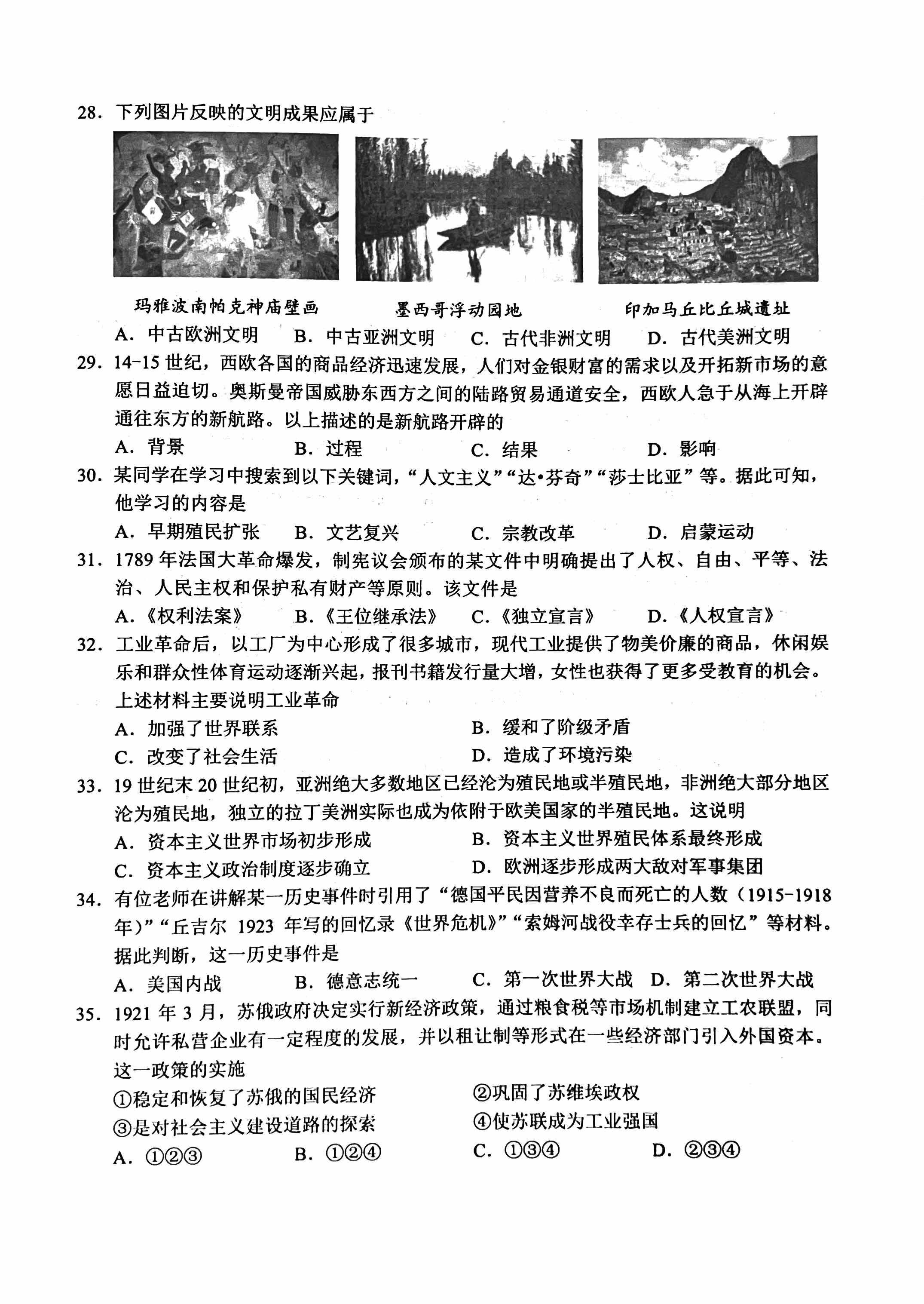 2024北京高中合格考历史试题及答案