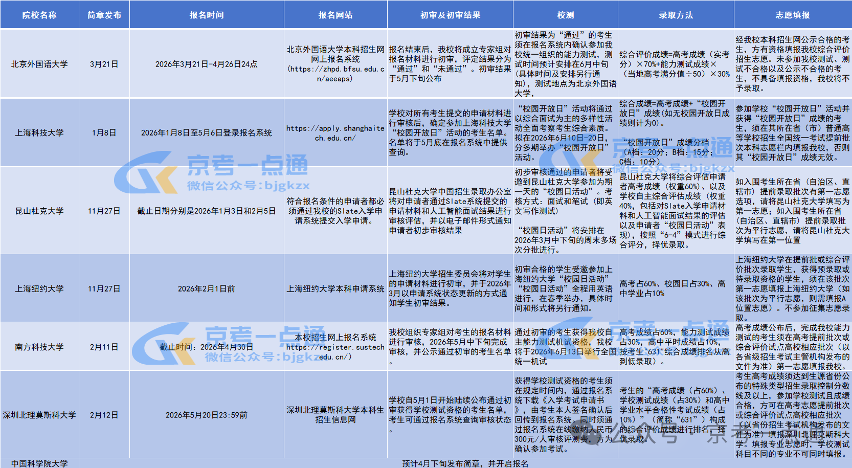 在京进行综合评价招生的高校共有7所。除中国科学院大学(预计4月发布简章),其他高校2026年综合评价招生简章均已发布!