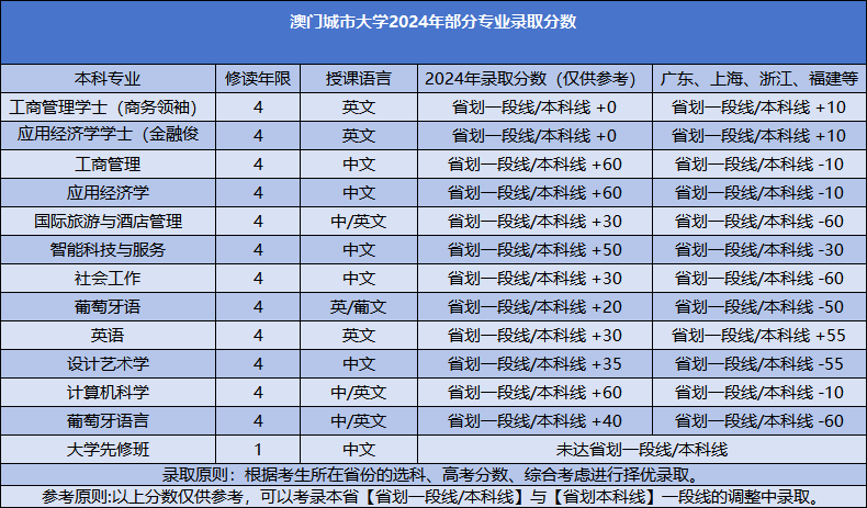 广东:一本线540分,澳门城市大学录取线文科商科550-560分,理科人文530-540分。
