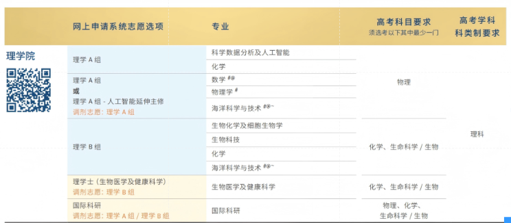 2026年香港科技大学在理学A组中增加了一个化学专业,高考选科要求必选物理。