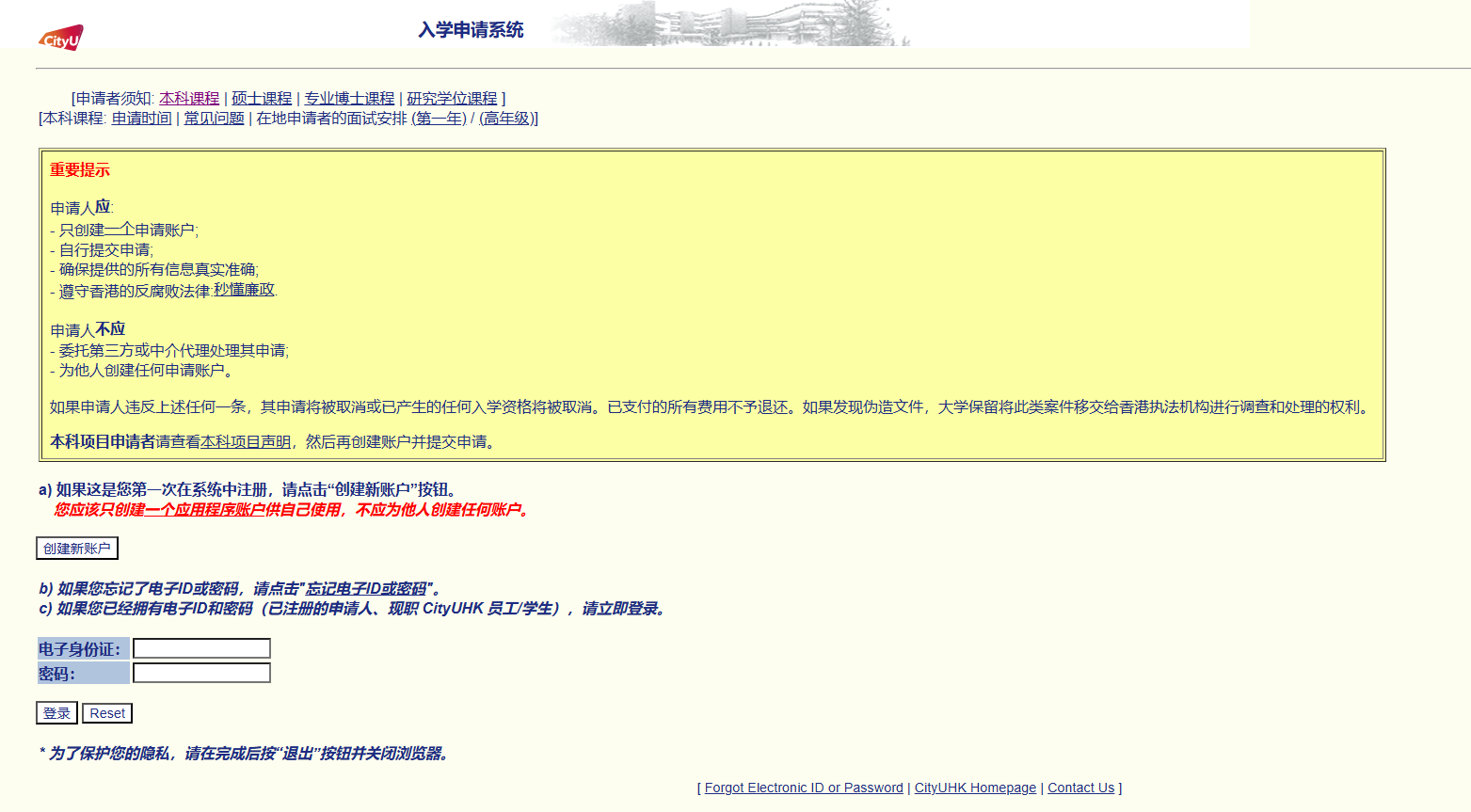 CityUHK 在线申请系统(复制至浏览器打开):https://banweb.cityu.edu.hk/pls/PROD/hwskalog_cityu.P_DispLoginNon