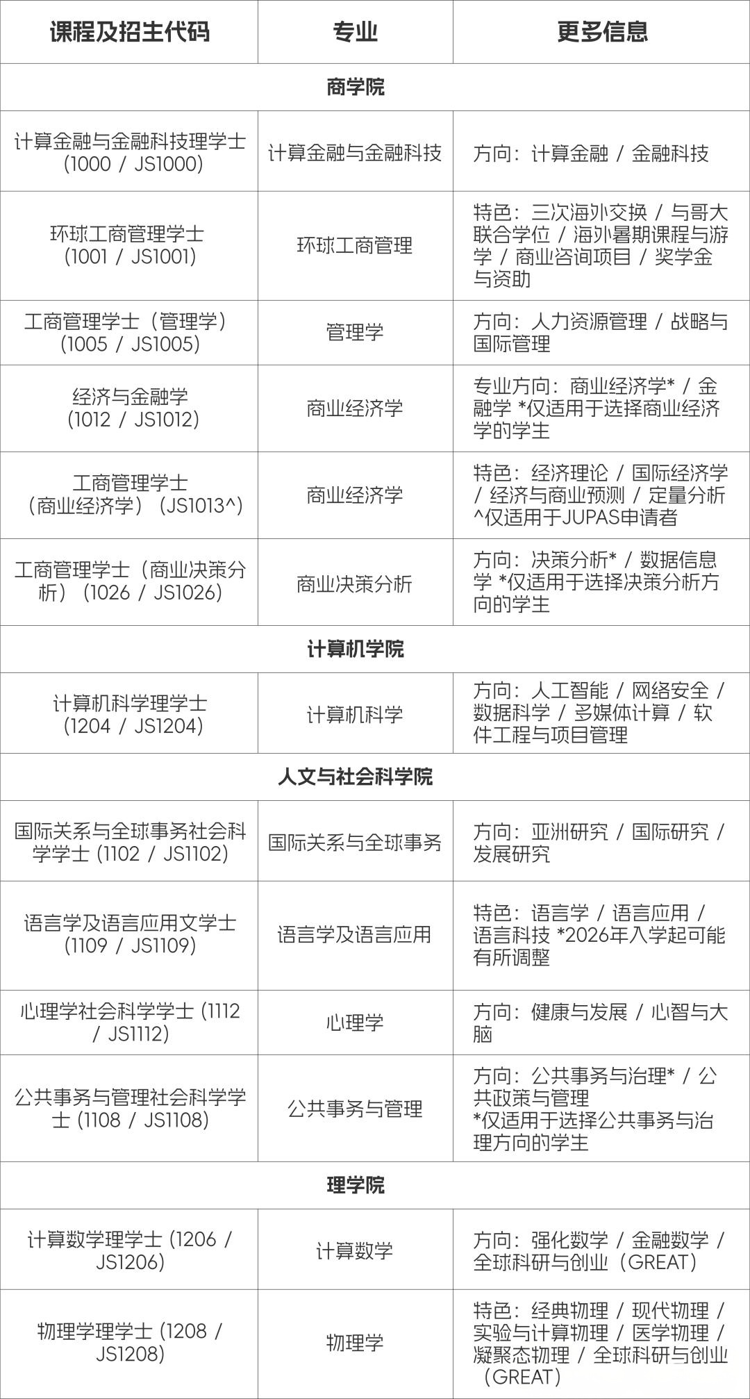 港城大:学生可在计算机科学、商业决策分析、物理学、心理学、管理学等12个专业中自行选择;