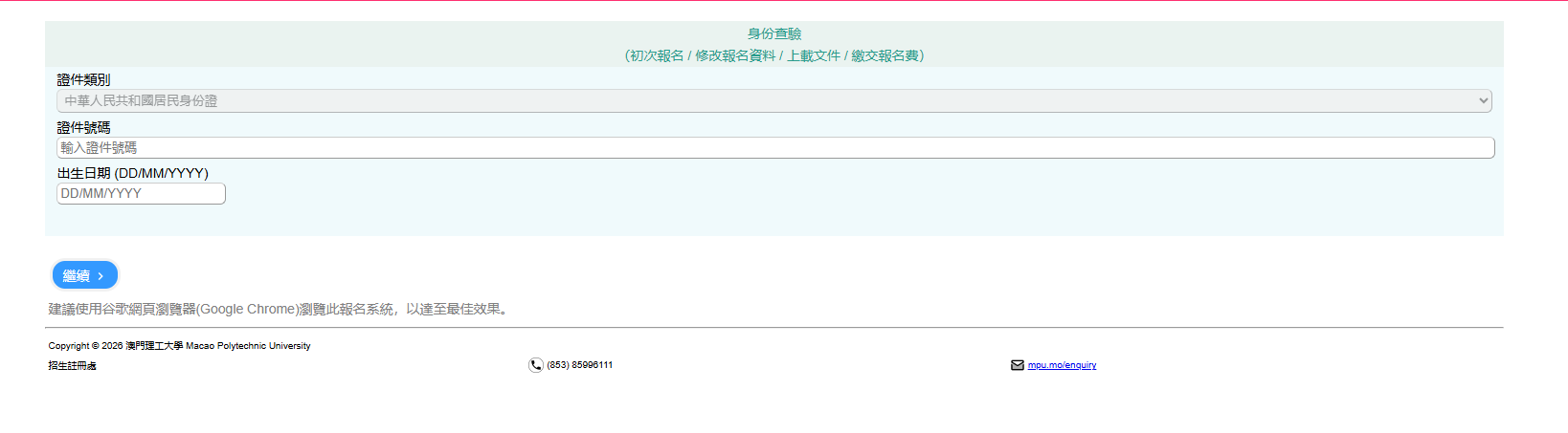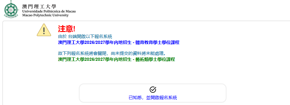 申请入口地址:https://wapps4.mpu.edu.mo/webappl/cndLogin.aspx?code=MAINLAND_ART_2627