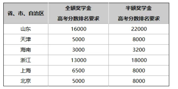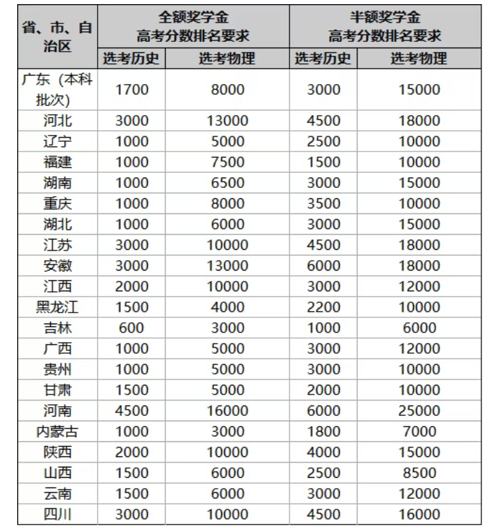 1、学校本科新生入学全额及半额奖学金获奖条件:高考分数排名或高考文化分总分须满足以下要求:
