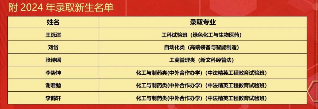 2024年北京八中高考喜报:北京化工大学录取学生名单