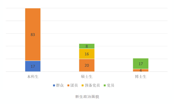 在2025级新生队伍中,我们欣喜地看到:本科新生共涵盖83名共青团员和17名群众;硕士新生中则有8名中共党员、16名预备党员和20名团员;博士新生中更是有17名党员和4名团员!我们相信不论身份如何,每一位同学都会以实际行动积极向党组织靠拢,始终与党同心,与国同行!