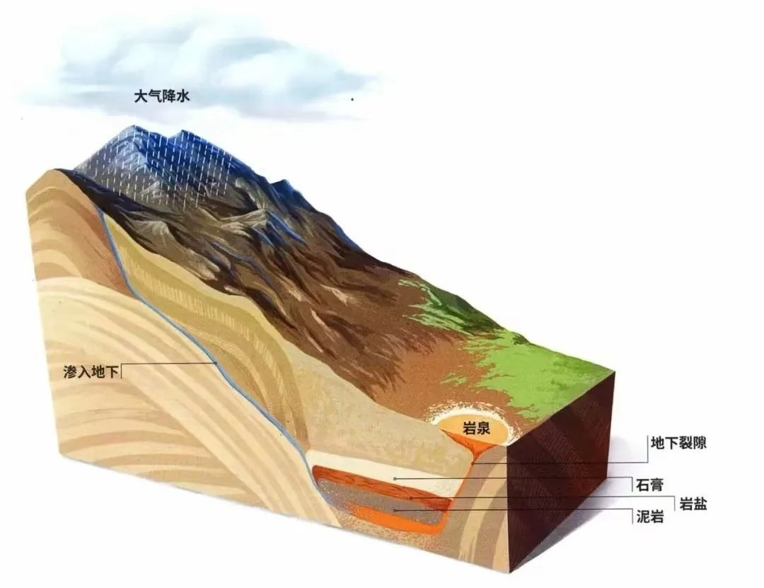 ②深循环路径:地下水需要有足够的深度和循环路径流经盐源岩层,溶解盐分。