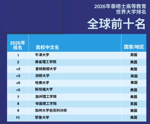 2026年泰晤士高等教育世界大学排名于10月9日北京时间早上7点正式揭晓。北京高考在线团队整理了相关内容,详情如下: