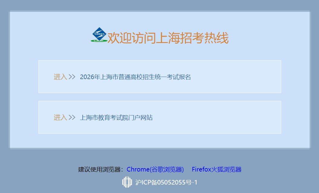 (1)登录上海市教育考试院“上海招考热线”网站(www.shmeea.edu.cn);