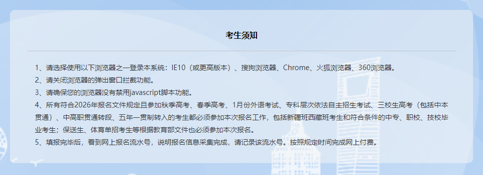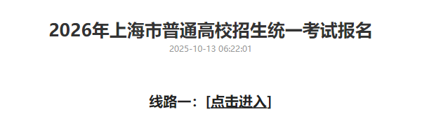 上海市2026年普通高等学校招生考试(以下简称高考)报名时间为10月13日至10月16日(每天8:00-21:00)、10月17日(8:00-16:00)。为帮助广大考生顺利进行报名,北京高考在线团队特意整理了2026上海市普通高校高考报名入口,详情如下: