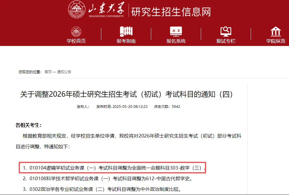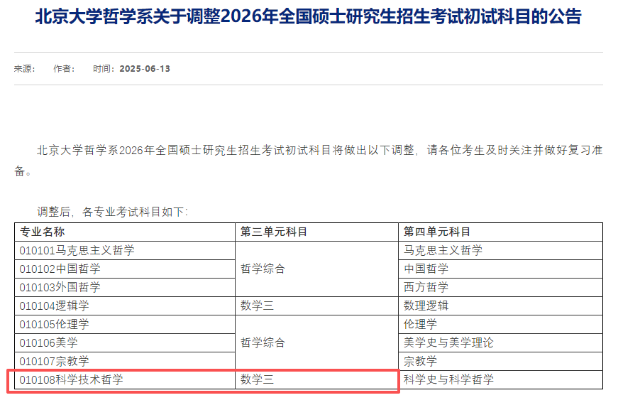 985名校率先进行调整。在哲学类专业中,北京大学哲学系的科学技术哲学,第三单元科目由科学技术史调整为数学(三);山东大学逻辑学初试业务课(一)考试科目调整为303数学(三)。