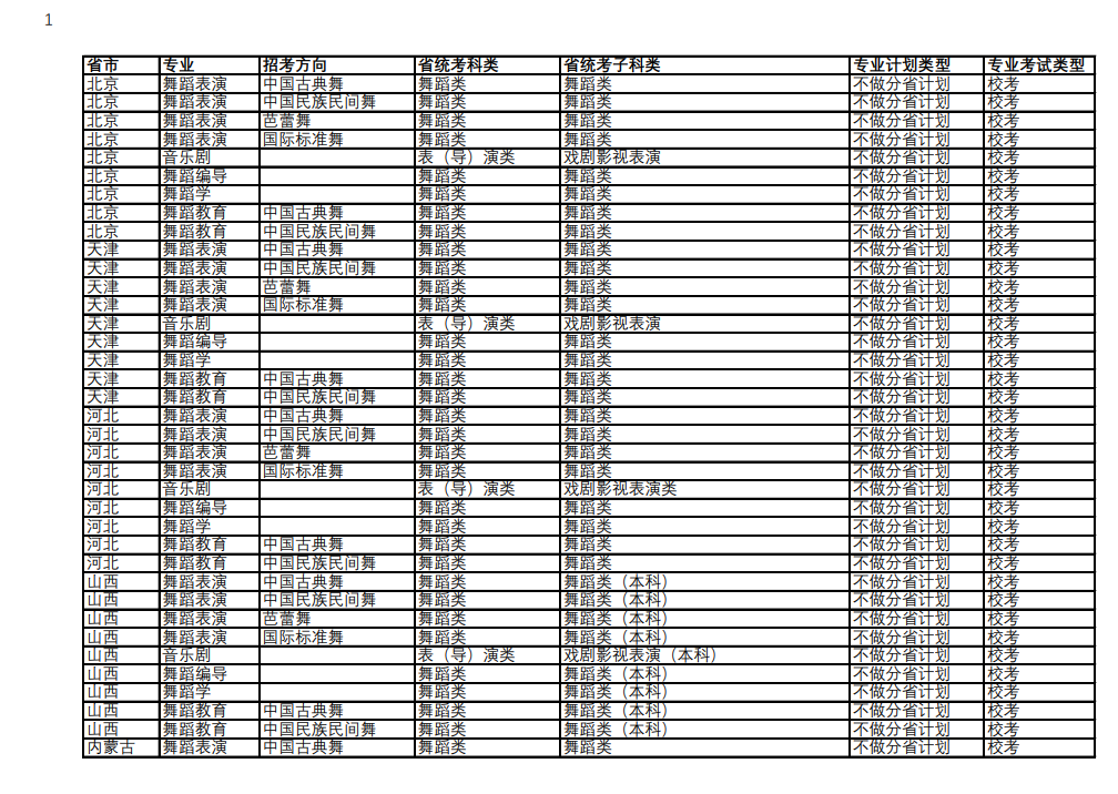 北京高考在线网站整理了北京舞蹈学院2026年各省省统考子科类对照表,一起来看各高校艺术类招生专业安排。