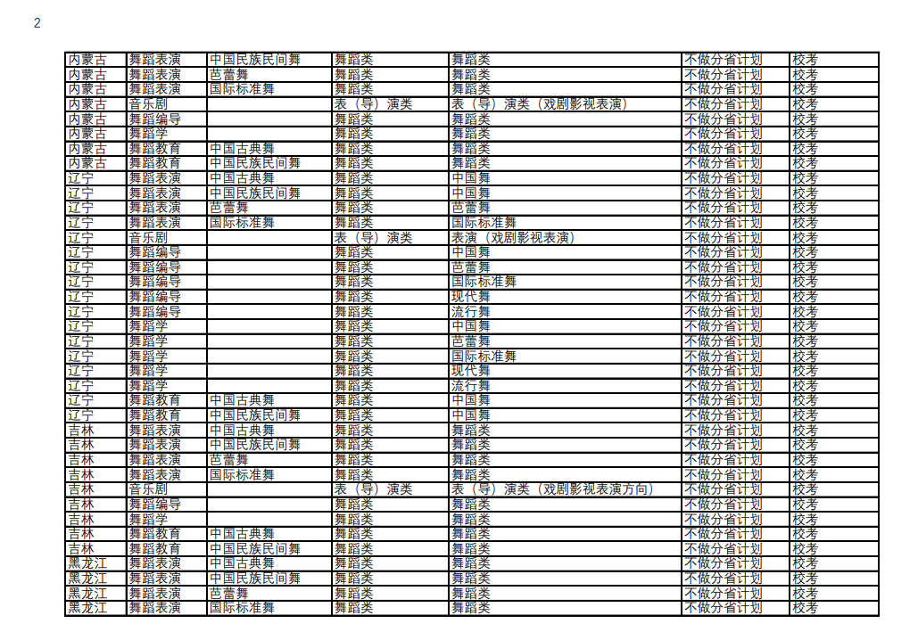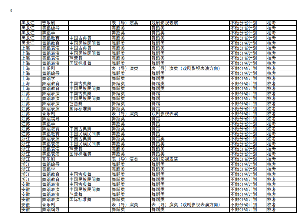 北京舞蹈学院2026年各省省统考子科类对照表9