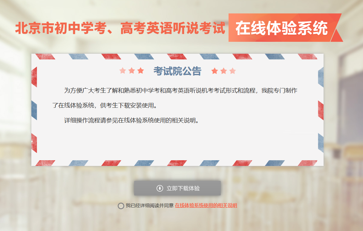 2026北京高考第一次英语听说考时间为2025年12月13日,为了帮助同学们备战听说考,北京高考在线团队特意整理了北京高考英语听说考试在线体验系统下载入口,详情如下: