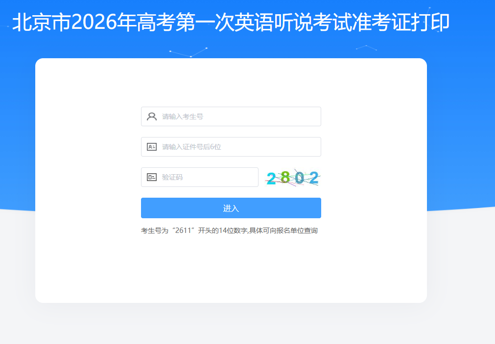 2025年12月8至13日,考生通过北京教育考试院网站自行打印第一次英语听说考试准考证,北京高考在线团队特意整理了2026北京高考第一次英语听说考准考证打印入口,详情如下: