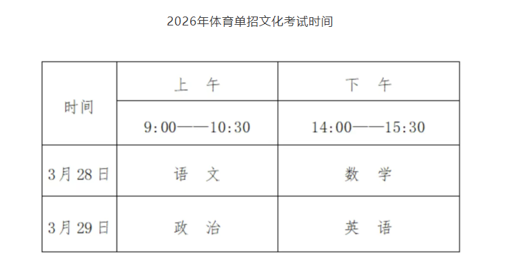 体育专项考试采用全国统考方式进行,满分为100分。冬季项目考试时间为2026年1月5日至5月12日。