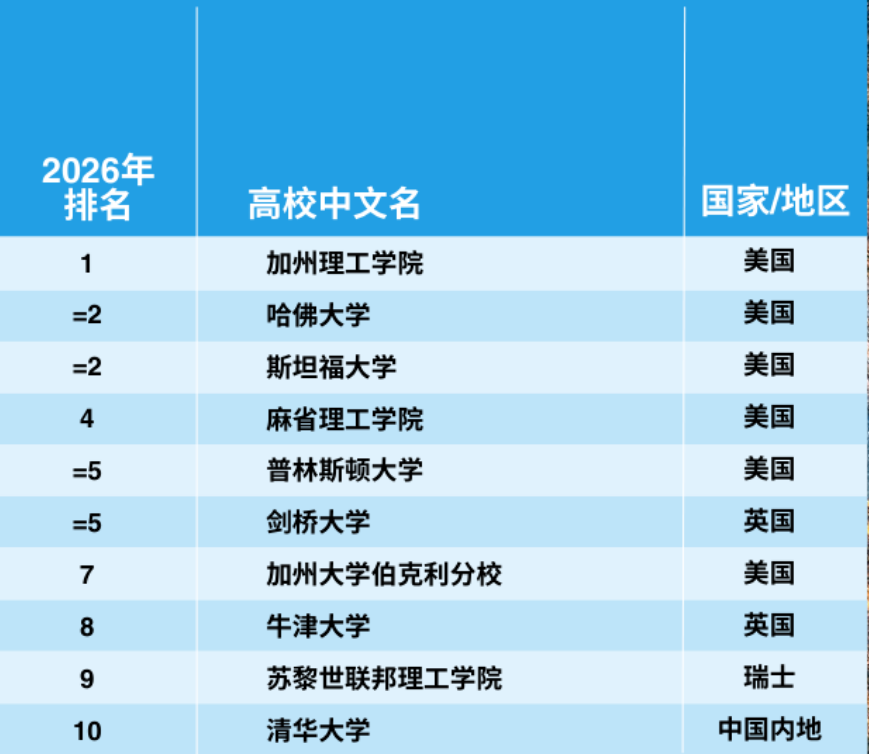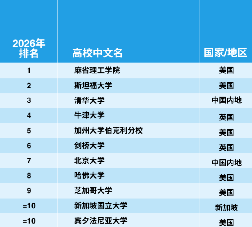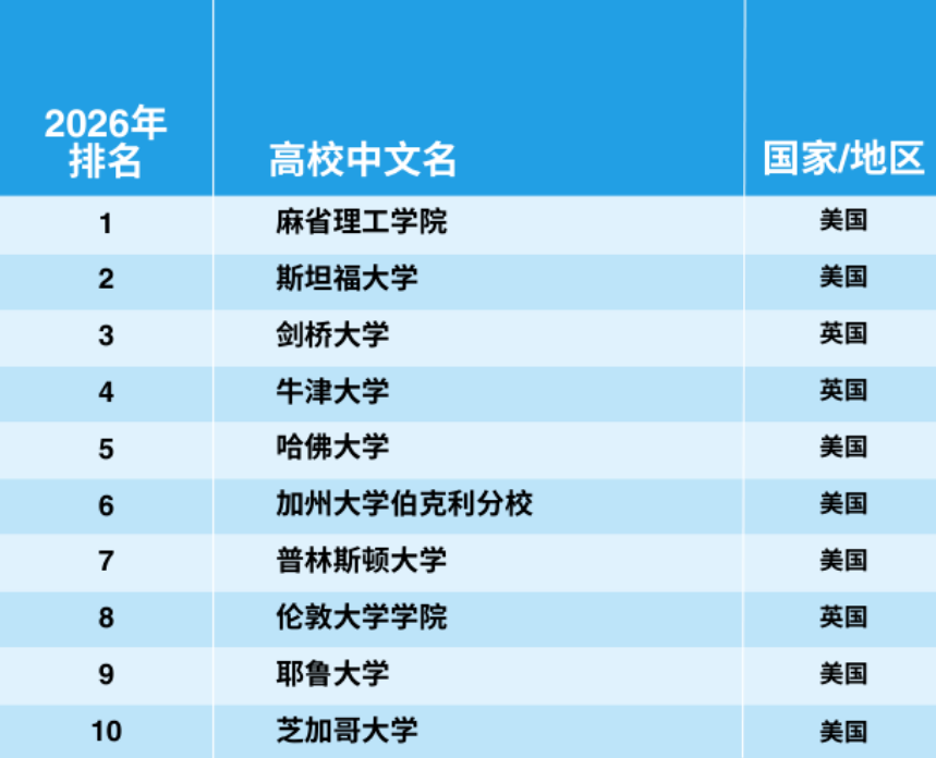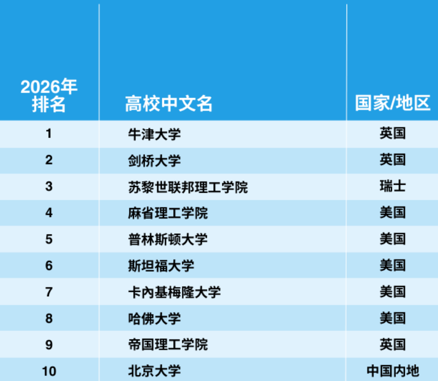2026年世界大学学科排名世界前十名高校-计算机科学