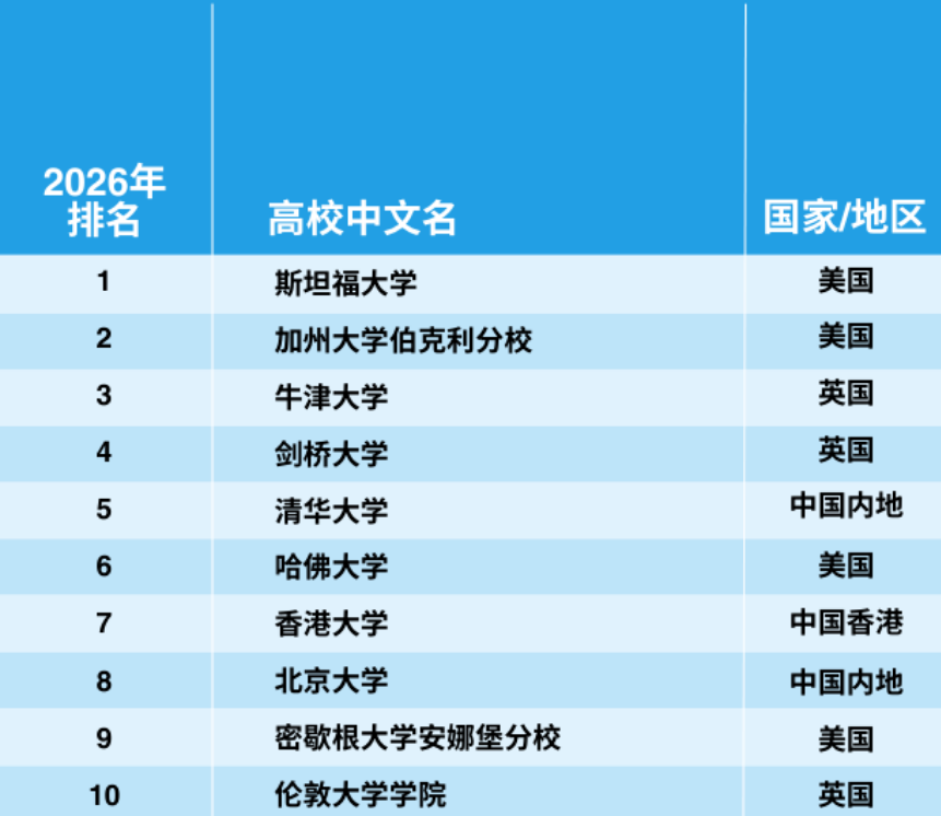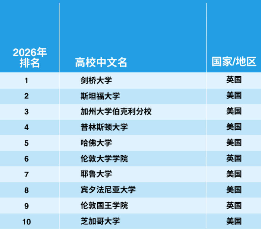 2026年世界大学学科排名世界前十名高校-商业与经济