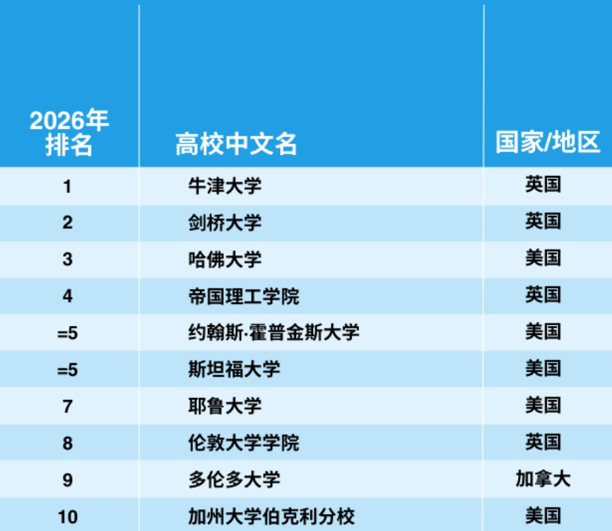 2026年泰晤士高等教育世界大学学科排名正式揭晓,发布了11个学科领域的大学排名,世界大学学科排名采用与世界大学排名相同的严谨方法,运用教学、研究环境、研究质量和国际展望等18项绩效指标,提供全球最全面、最平衡的学科排名。北京高考在线团队整理了相关内容,详情如下: