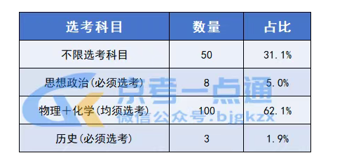 选科要求不限的专业共有50个,占总数的31.14%,可选择大部分学校的法学、工商管理、公共管理、哲学、社会学、外国语言文学、历史类、教育学、新闻传播等王牌专业。