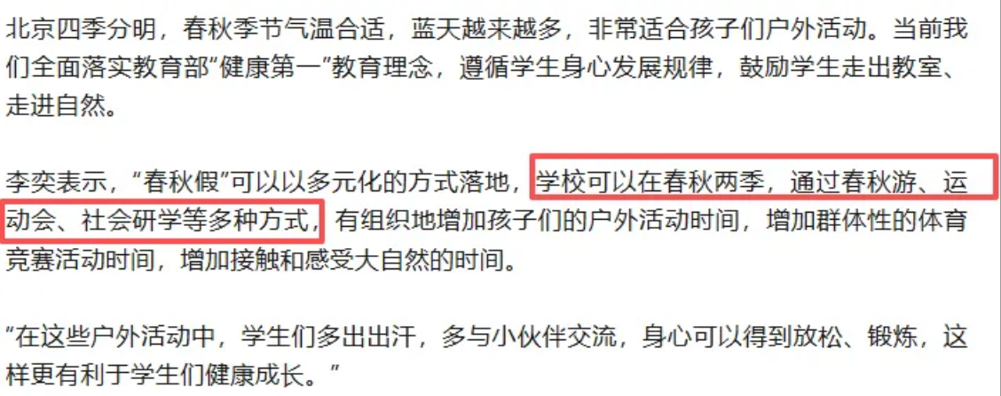 2026年北京市教委回复春秋假安排