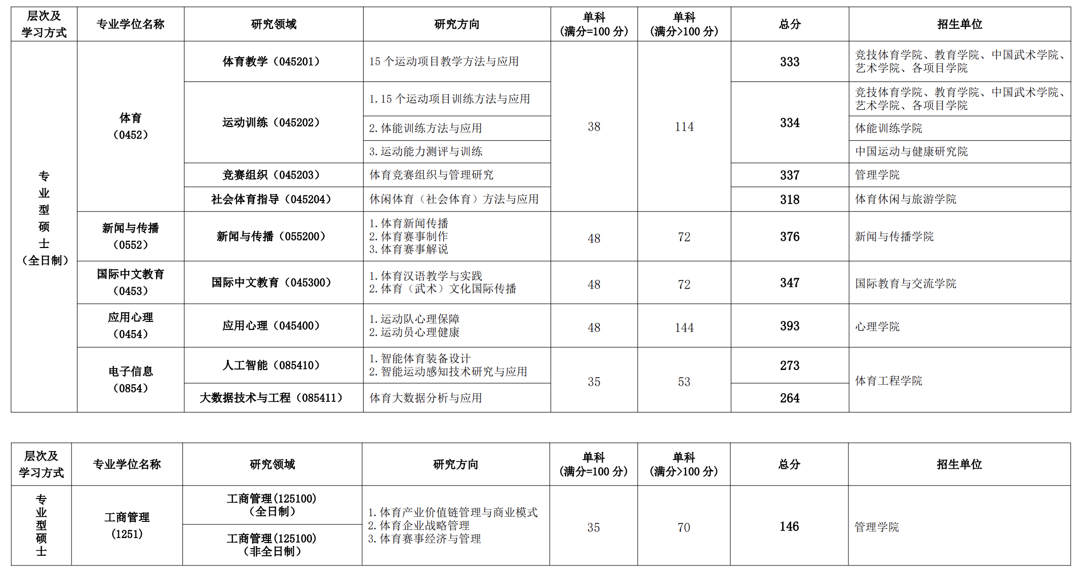 以下是北京体育大学 2026 年硕士研究生招生考试考生进入复试的初试成绩基本要求,供大家参考。