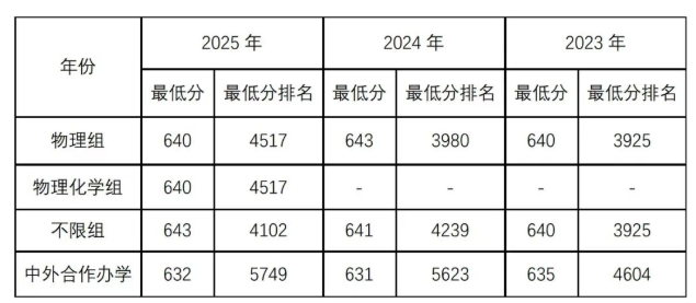 1.近年录取趋势:近三年数据(2023-2025)显示,“不限组”与“物理组”的录取分数非常接近。原因在于两组专业含金量高、选择多且均衡。不限组包含金融学、会计学等传统王牌;物理组包含金融科技、数字经济等前沿方向,均属顶尖财经专业。