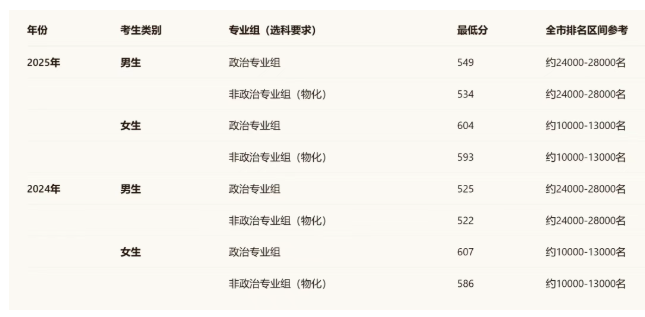 2.明确的性别比例:女生招生计划数不超过总计划的15%,这一比例限制使得女生录取竞争更为激烈,历年录取分数也显著高于男生。