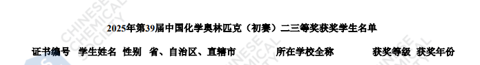 第39届化学竞赛初赛2025年9月7日(星期日)上午9:00~12:00在全国同时进行,各省市省一名单已经公布,北京高考在线整理了2025青海赛区第39届化学竞赛初赛青海省三获奖名单,希望对考生有所帮助。