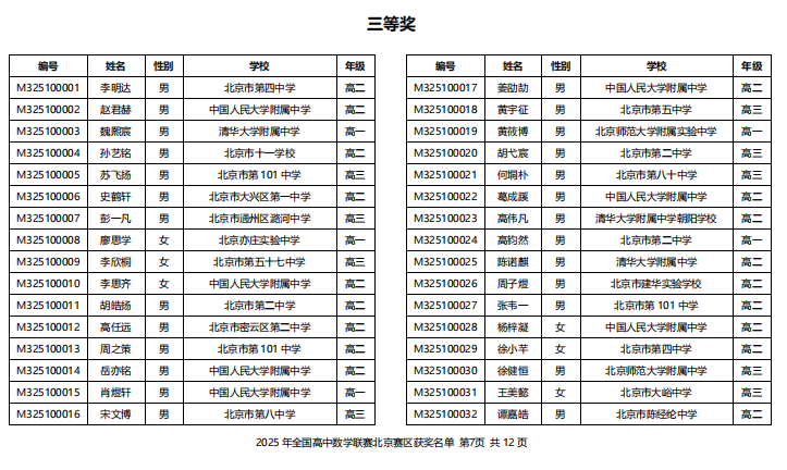 2025第41届高中数学联赛北京赛区省三获奖名单已经公布,北京高考在线整理了2025第41届高中数学联赛北京赛区省三获奖名单,希望对考生有所帮助。