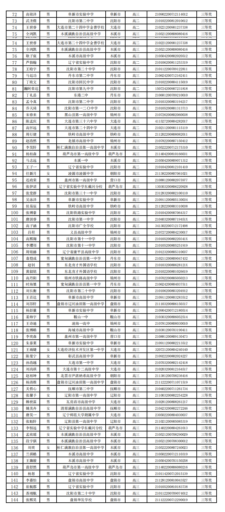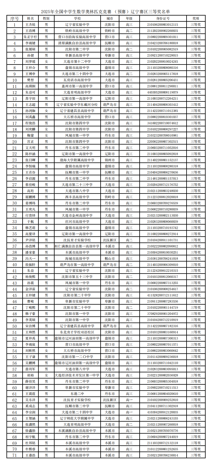 2025第41届高中数学联赛辽宁赛区省三获奖名单