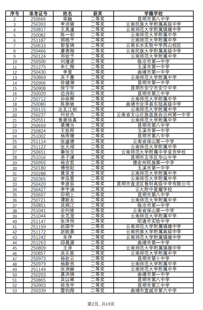 2025第41届高中数学联赛云南赛区省二获奖名单已经公布,北京高考在线整理了2025第41届高中数学联赛云南赛区省二获奖名单,希望对考生有所帮助。
