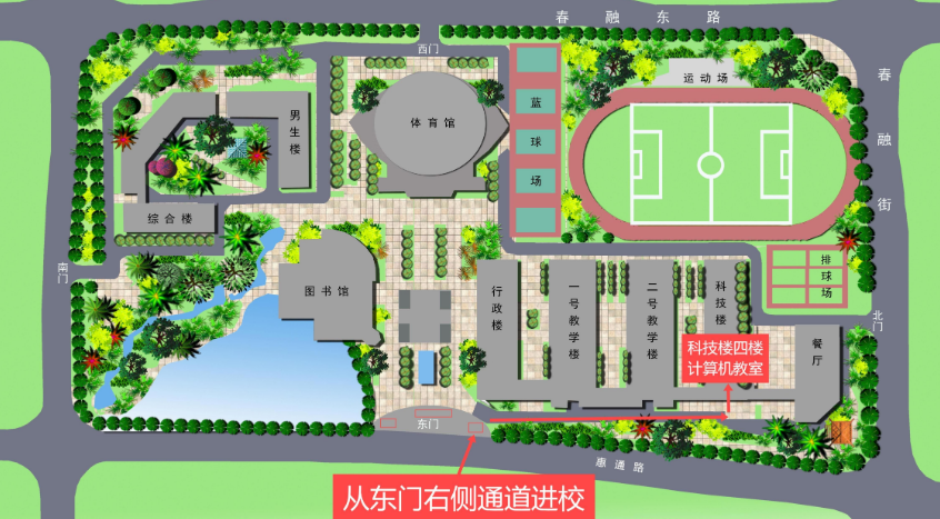 2. 考试地点:昆明市第三中学(昆明市呈贡区惠通路678号)科技楼4楼计算机教室。