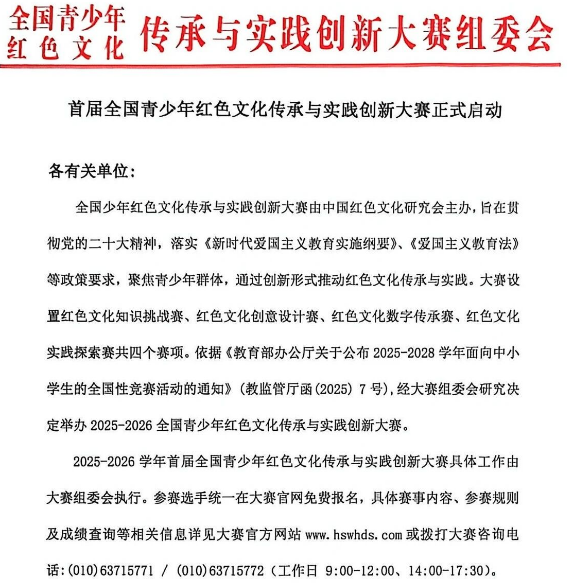 首届全国青少年红色文化传承与实践创新大赛已正式拉开帷幕,该赛事作为2025-2028白名单赛事之一,备受关注,那么,这场赛事的详细安排是怎样的?报名又应在何处进行?今天本篇文章为大家带来全国青少年红色文化传承与实践创新大赛相关内容,大家一起来看!