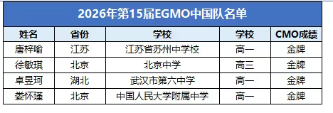 2026第15届欧洲女子数学奥林匹克(EGMO)中国队名单出炉!