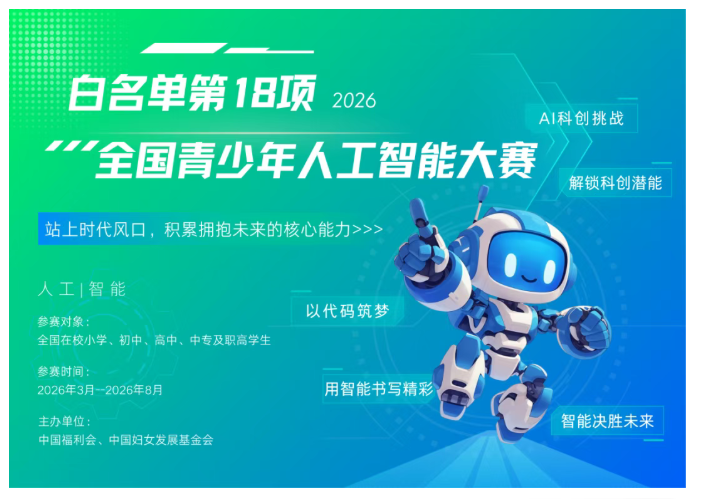 全国青少年人工智能创新挑战赛,正是为全国中小学生量身打造的人工智能领域权威赛事平台,旨在激发创新精神,培养实践能力,为国家人工智能领域储备未来人才。北京高考在线团队特意整理了2026全国青少年人工智能创新挑战赛的相关通知,详情如下: