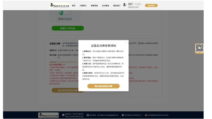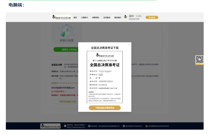 2、晋级确认后,参赛选手可登录大赛官网,下载大赛专用稿纸和准考证。