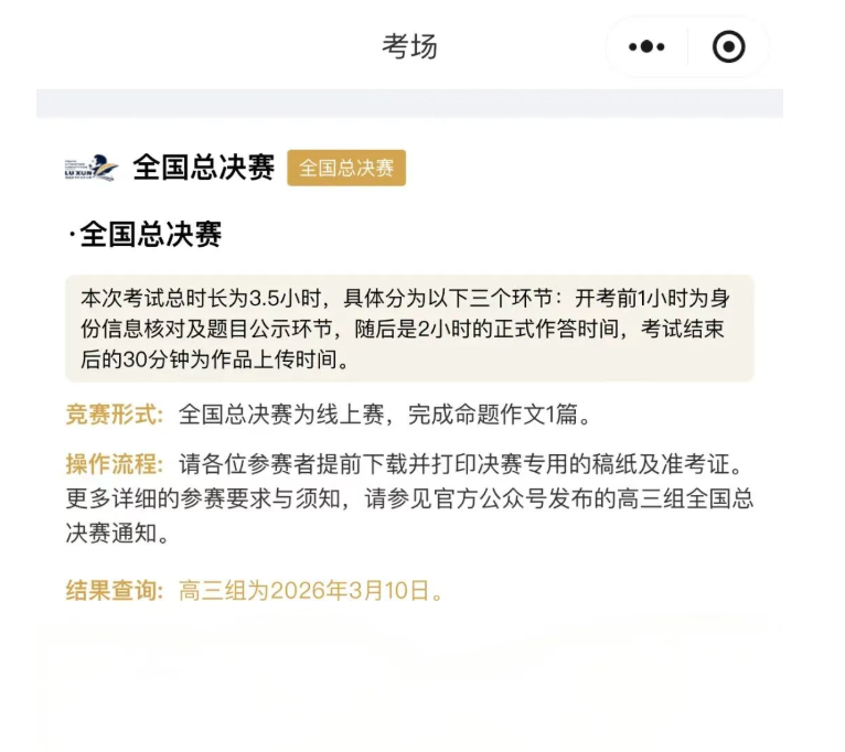 第十七届鲁迅青少年文学大赛高三组全国总决赛通知发布
