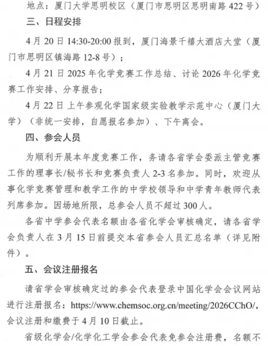 中国化学会2026年化学竞赛工作会议通知现已发布!我们特别为广大化学爱好者整理了相关通知内容,请各位同学及时查收并关注最新信息。