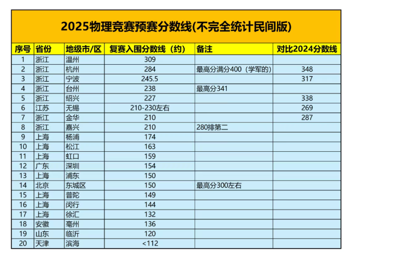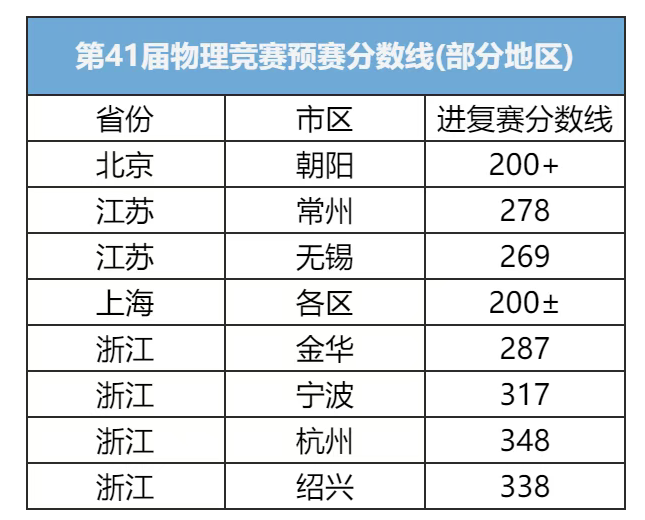 物理竞赛预赛进复赛的分数线因省份和年份不同而异,预赛满分通常为400分,中等省份一般需260分左右(满分400分),强省需340分左右,才能进复赛,但具体分数线需以各省官方公布为准。
