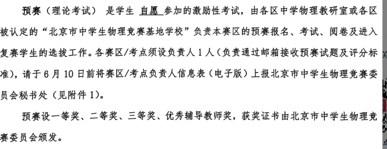 北京市物理竞赛预赛奖项设置