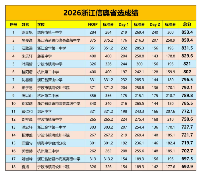 CCF NOI2026浙江省队选拔活动近日在杭州举行,目前网传省选成绩出炉;浙江省省选的成绩怎么样?哪些考生能进入浙江信息学竞赛省队名单?北京高考在线整理了相关内容,供考生参考。