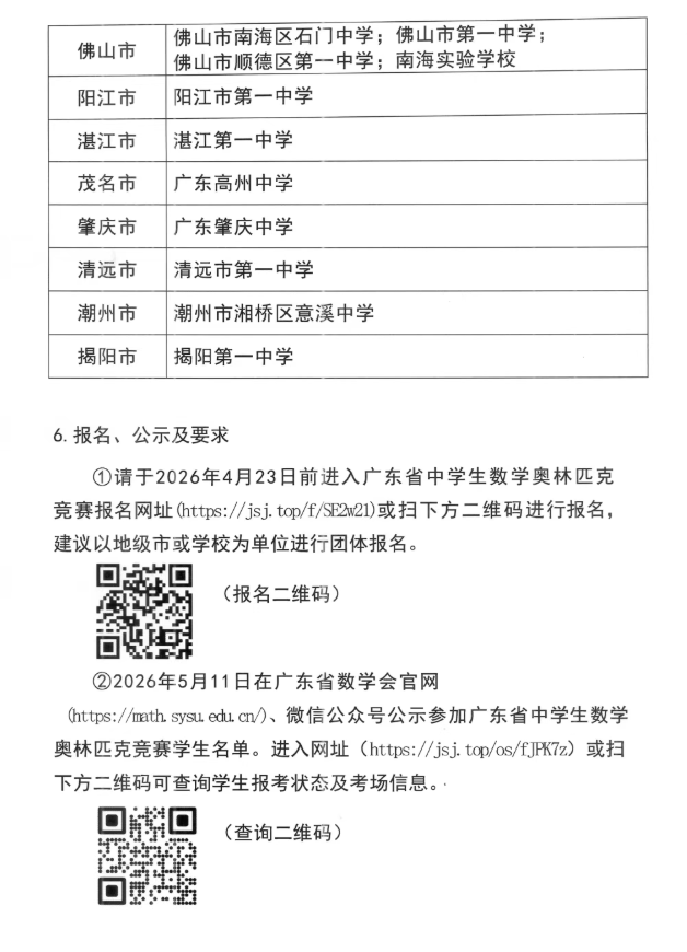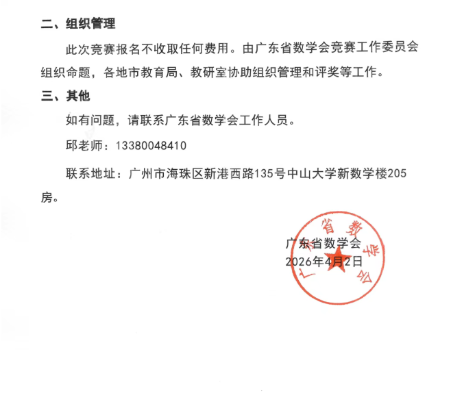 2026中学生数学竞赛初赛广东赛区初赛通知