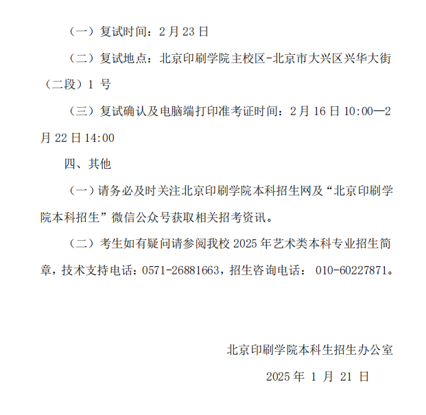北京印刷学院2025艺术类校考初试结果查询及线下复试安排