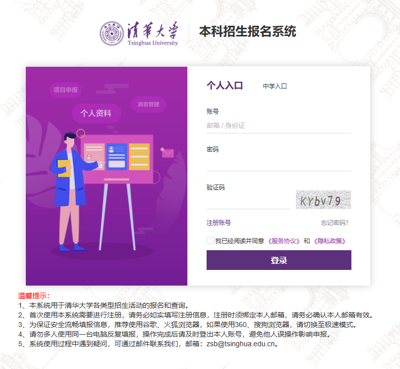 报名入口(复制至浏览器打开):https://admission.join-tsinghua.edu.cn