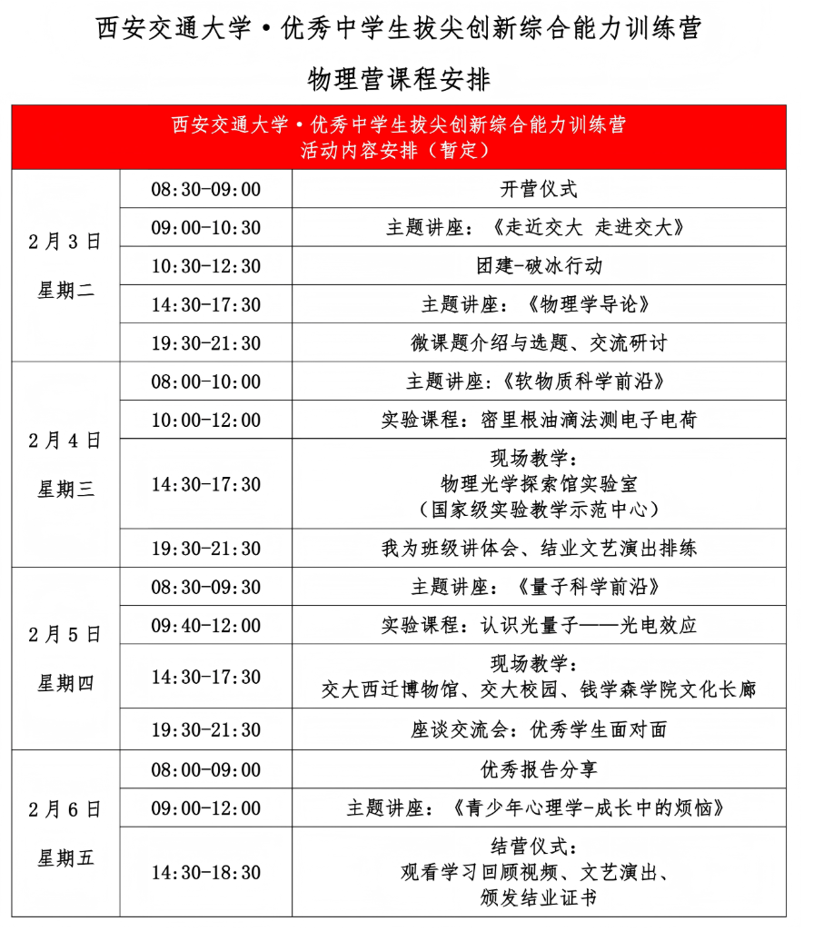 西安交通大学第四届优秀中学生拔尖创新综合能力训练营招生简章(物理营)