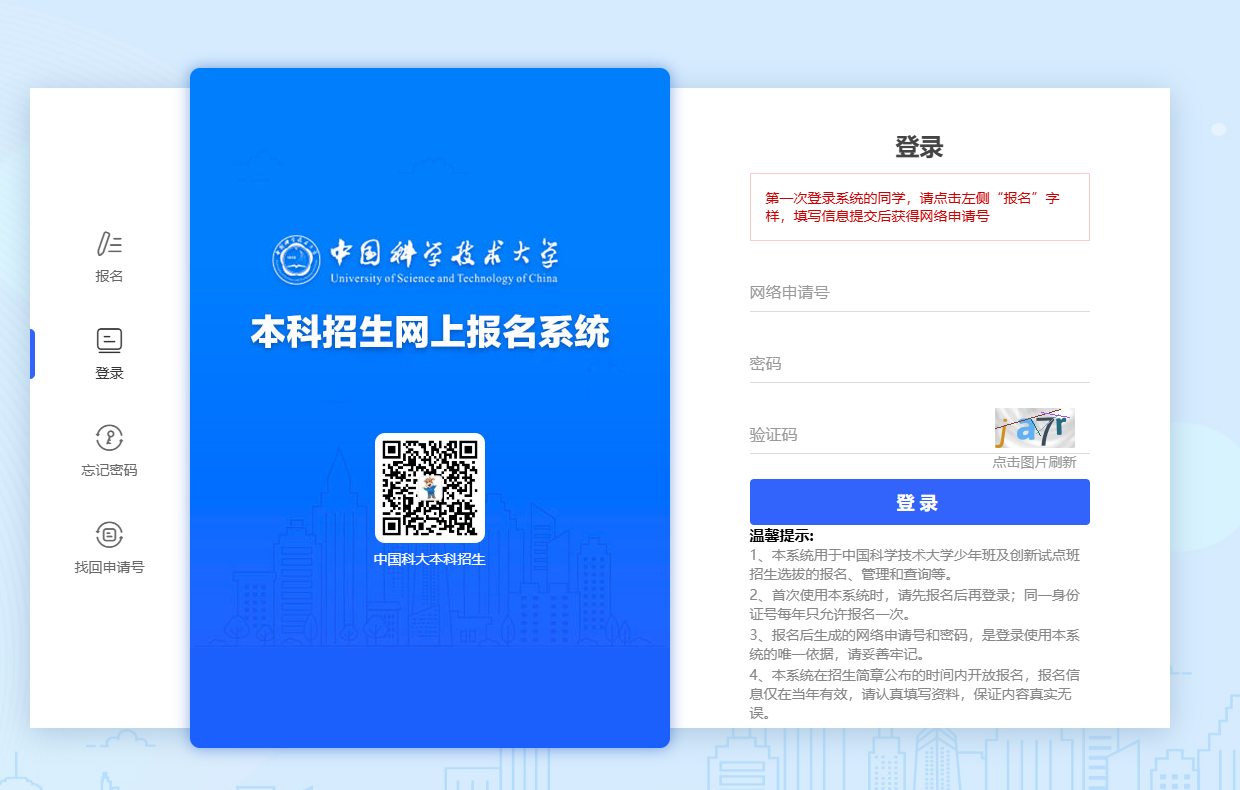 网上报名系统网址(复制至浏览器打开):https://admission.ustc.edu.cn