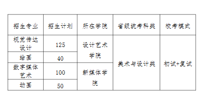 注:面向全国所有省份招生(不含港澳台),不编制分省计划(最终招生计划数以上级主管部门批复为准)。视觉传达设计、数字媒体艺术、动画3个专业可兼报,校考合格证3个专业通用;绘画专业与其他校考专业不可兼报。