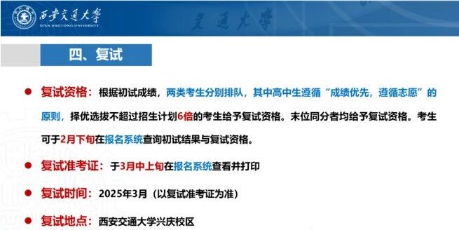 时间及地点:2026年3月(以复试准考证为准),西安交通大学兴庆校区。
